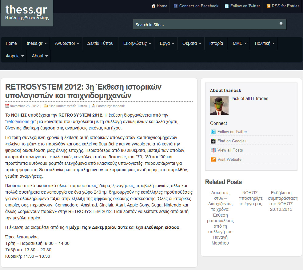 Ρεπορτάζ της retrosystem 2012 στο thess.gr και σε μορφή Jpg